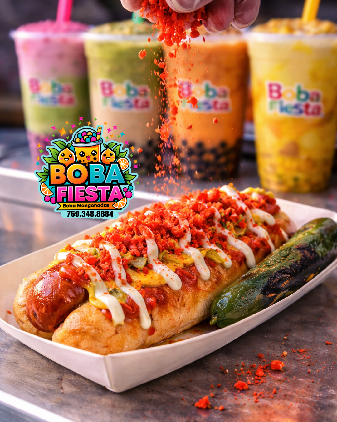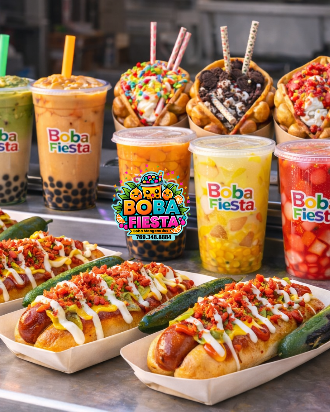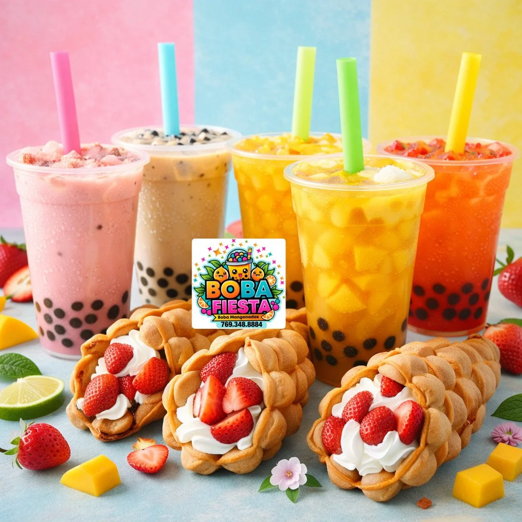 We offer a unique mix of boba milk teas, fruit teas, coffees, bubble waffle, and Mexican street hotdogs —delivering fun, flavor, and a crowd-pleasing fiesta for schools, community events, business events, and private events like birthday parties or baby showers.
